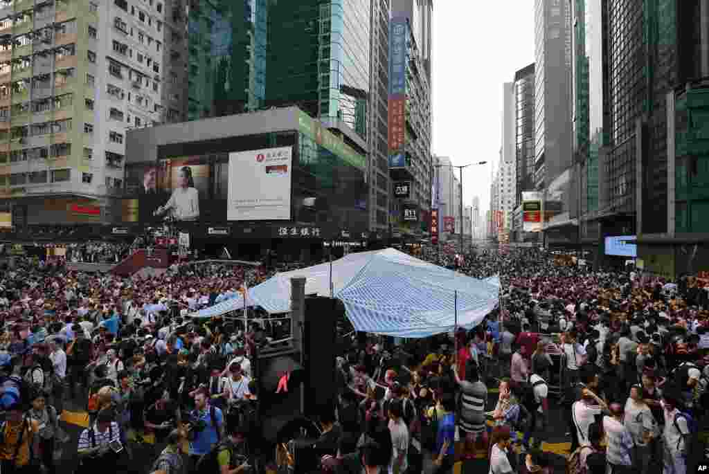 Gonkong rahbariyati demokratiya talabi bilan namoyishga chiqib, ko'chalarni yopib qo'ygan olomonni tarqalishga chaqirmoqda. Namoyishchilar jamoatchilik hayotini qiyinlashtirmoqda, deydi rasmiylar. To'qnashuvlar kuzatilgan. Politsiya 19 kishini hibsga olgan, 18 odam jarohatlangan, jumladan xavfsizlik xodimlari. Hokimiyatning pozitsiyasi shuki, fuqarolarning namoyish qilishga haqqi bor, lekin tartib buzilmasligi kerak. O'n minglab talabalar bir necha kundan beri piket qilmoqda. Ularning asosiy talabi shuki, 2017-yilda Xitoy bu yerda demokratik saylov bo'lishi uchun sharoit yaratib berishi kerak. Gonkongning hozirgi rahbari darhol ishdan ketishi kerak. Talabalar federatsiyasi tashkil etgan bu namoyishlar tinmaydi, deydi yoshlar, talab qat'iy. 1997-yildan beri Gonkongni o'z nazoratiga olgan Xitoy repressiv siyosatdan voz kechmas ekan, norozilik ham to'xtamaydi, deydi talabalar.