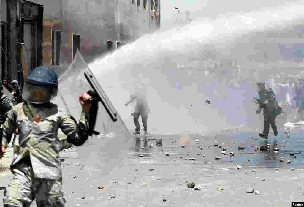Politsiya namoyishchilarni tarqatish uchun o’q, ko'zga yosh keltiruvchi gaz, va suvdan foydalangan.