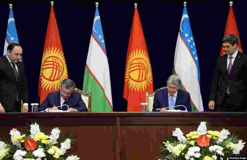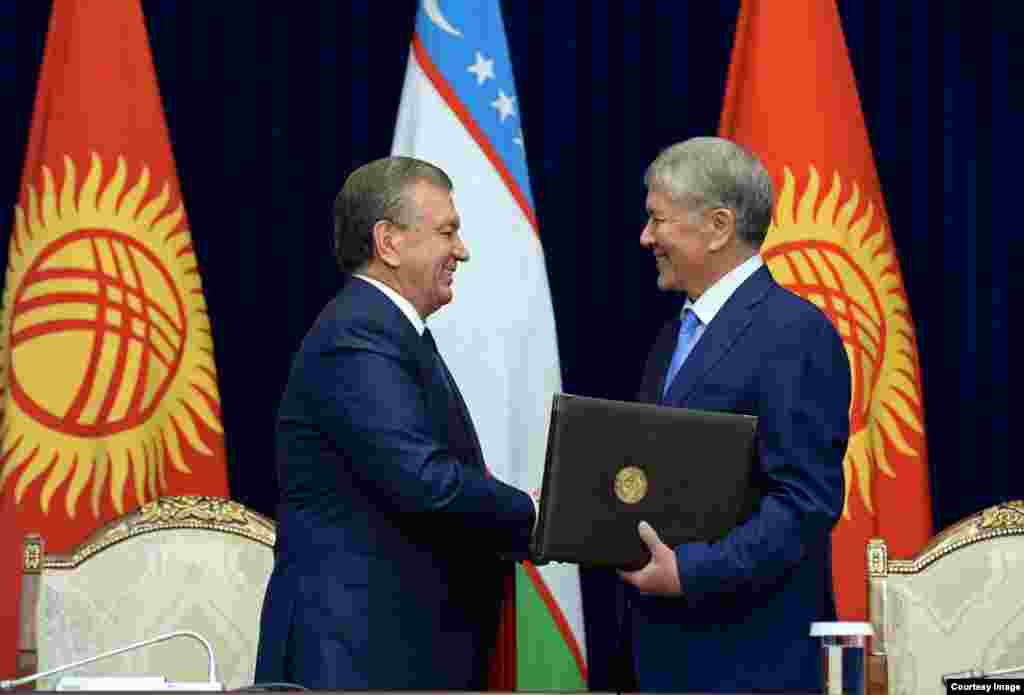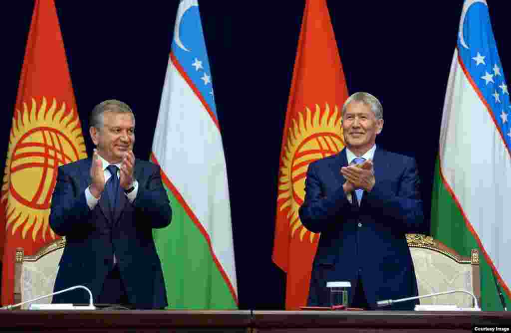 Tarixiy uchrashuv... O'zbekiston rahbari Shavkat Mirziyoyev Bishkekda. Qirg'iziston va O'zbekiston prezidentlari ikki kun davomida har tomonlama hamkorlik yuzasidan kelishib olishga bel bog'lagan. Atambayev oktabr oyida prezidentlikdan ketadi lekin mamlakatlar orasidagi rishtalar rivojlanishda davom etadi. Buning uchun zamin yaratilmoqda, deydi tomonlar. Bugun Bishkekda O'zbekiston va Qirg'iziston rahbarlari ikki davlat orasidagi chegaraning 85 foizi yuzasidan bitim imzoladi. Hamma gap siyosiy irodada, deydi Atambayev.
