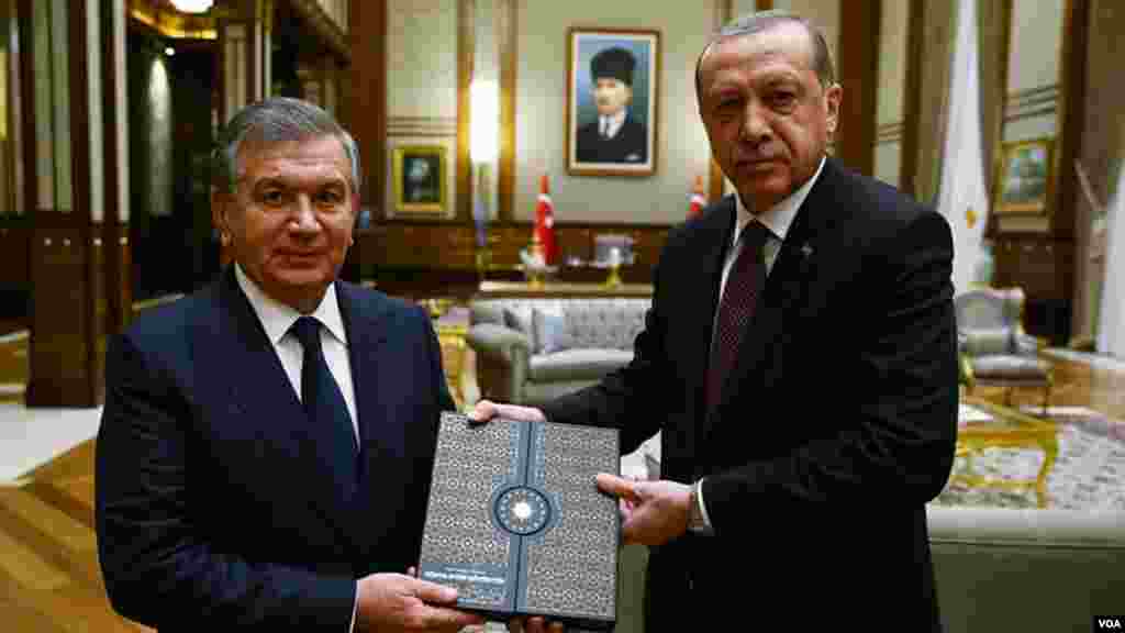 O'zbekiston-Turkiya: Prezident Shavkat Mirziyoyevning Anqaraga tashrifi munosabatlarda yangi sahifa ochishga qaratilgan.Turkiya Prezident Rajab Toyib Erdog'an bilan muloqot ketidan delegatsiyalar hamkorlikka doir 21 hujjat imzolagan.