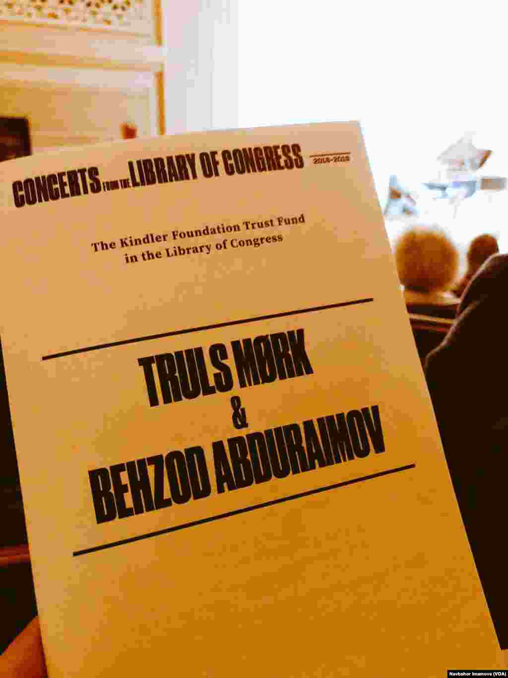 Vashington, 6-oktabr, 2018: O'zbekistonlik yosh va mashhur pianist Behzod Abduraimov va norvegiyalik violonchel ustasi Truls Mork bugun AQSh poytaxtida Kongress kutubxonasida konsert berdi. Betxoven, Prokofiyev va Raxmaninov asarlaridan ijro etishdi.