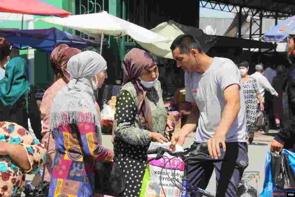 Jamoat joylarida niqobsiz yurish taqiqlanganiga qaramay, odamlar yangi tartibga boʻysunishi qiyin kechmoqda. Spitamen tuman markazi va Markaziy bozordagi holat bilan tanishdik. Odamlar hatto “Niqobsiz yurish qatʼiyan man etiladi” degan yozuv oldida ham niqobsiz.
