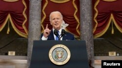 Amerika xalqi 2021-yilning 6-yanvarida Kapitoliy binosi va ostonalarida ro’y bergan qonli voqealarni yodga olar ekan, Prezident Jo Bayden tartibsizliklarda to'g'ridan-to'g'ri sobiq prezident Donald Trampni aybladi va demokratiyaga tahdidlar davom etayotgani haqida ogohlantirdi.