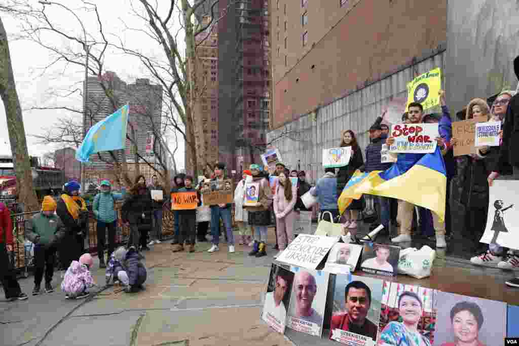 Nyu-Yorkda BMT bosh qarorgohi oldida Rossiyaning Ukrainadagi urushini to’xtatish va siyosiy mahbuslar ozodligi uchun namoyish tashkil etildi. Namoyishda Qozog’iston, Turkmaniston, Ukraina va Rossiyadan kelgan muhojirlar ishtirok etdi.