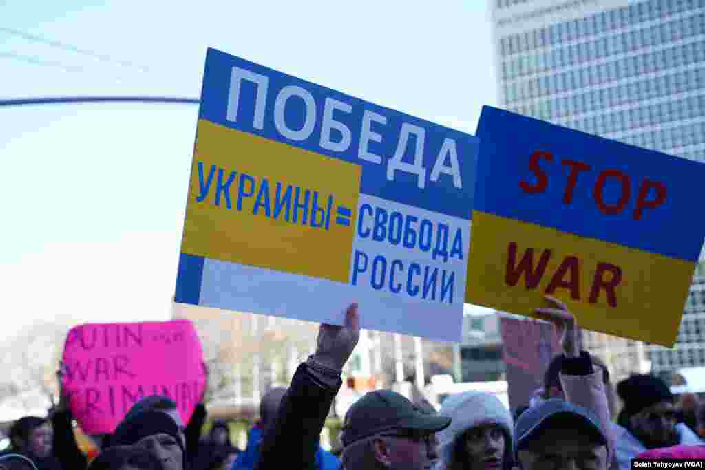 Rossiyaning Ukrainaga bosqini bir yilligi munosabati bilan 24-fevral kuni Nyu-Yorkda namoyish bo’lib o’tdi. Urushga qarshi aksiya AQShda yashaydigan, o‘zlarini Rossiyaning erkin fuqarolari deb e’tirof etayotgan faollar tashabbusi bilan o’tkazildi. Unda Markaziy Osiyo mamlakatlaridan chiqqan bir guruh qochqinlar ham qatnashgan.