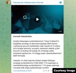 O’zbekiston hukumati Rossiyada ishlayotgan mehnat muhojirlarini “Yangi Toshkent”ni birgalikda qurishga chaqirmoqda. Bu muhojirlarga nisbatan bosimlar avj olgan Rossiyada mehnat qilayotgan milliondan oshiq o’zbeklarning kichik bir foizi uchungina umidli xabar bo’lishi mumkin.