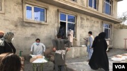Ba’zi afg’onlar banklardan pulini olishga navbatda turibdi.
