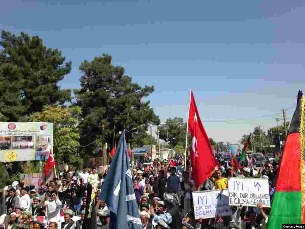 Afg’onistonning Shibrig’on shahrida uyushtirilgan namoyishda yuzlab odam ishtirok etdi. Namoyishchilar Turkiyada bir guruh harbiylar qo'l urgan davlat to’ntarishini qoralab chiqdi. Demokratik yo’l bilan saylangan hukumatni to’ntarish milliy xiyonat hisoblanadi, deydi ular.
