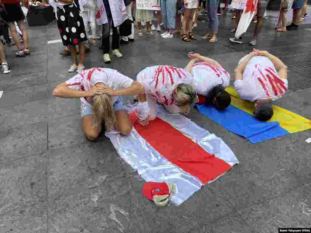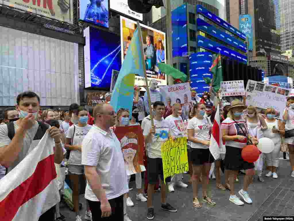 “Yashasin Belarus!” degan hayqiriqlar Nyu-Yorkning Tayms Skver xiyobonida yangramoqda. Belaruslik immigrantlar namoyishlar o’tkazib, mamlakatni 26 yildan beri boshqarib kelayotgan Aleksandr Lukashenkoni hokimiyatdan ketishda chaqiryapti.