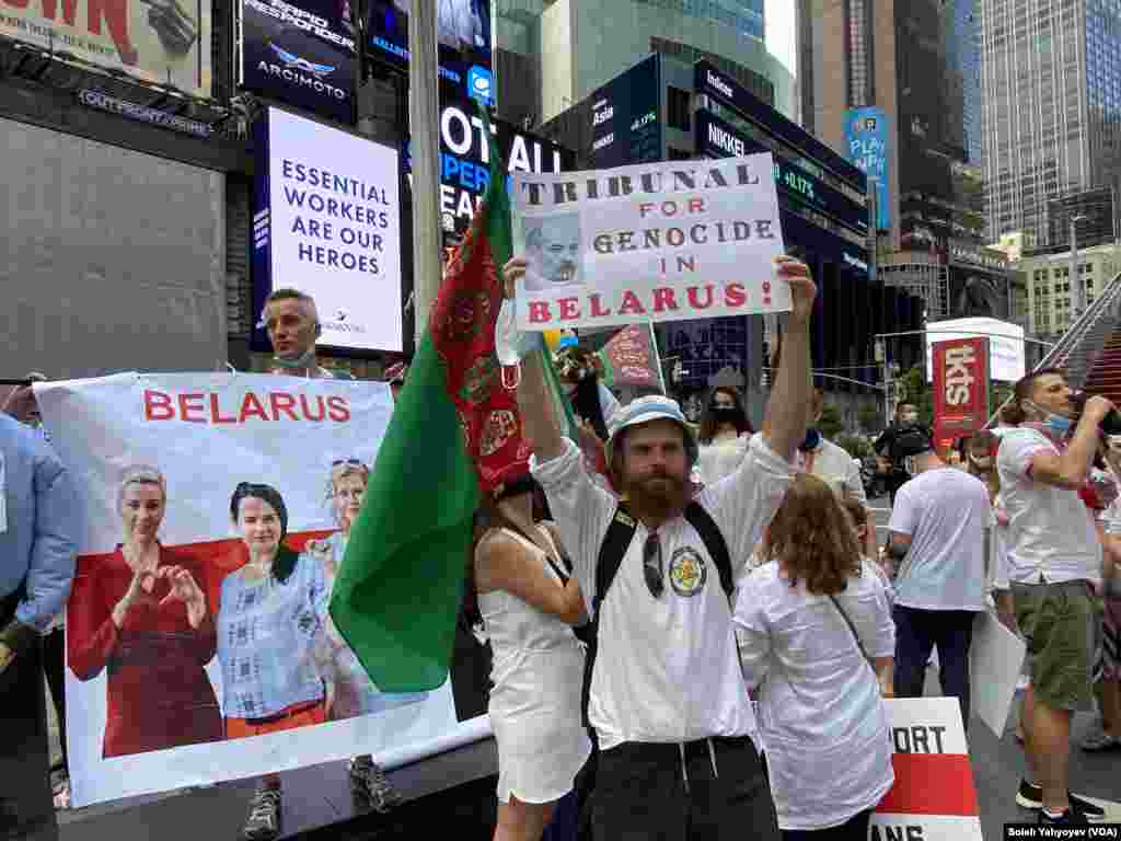 “Yashasin Belarus!” degan hayqiriqlar Nyu-Yorkning Tayms Skver xiyobonida yangramoqda. Belaruslik immigrantlar namoyishlar o’tkazib, mamlakatni 26 yildan beri boshqarib kelayotgan Aleksandr Lukashenkoni hokimiyatdan ketishda chaqiryapti.