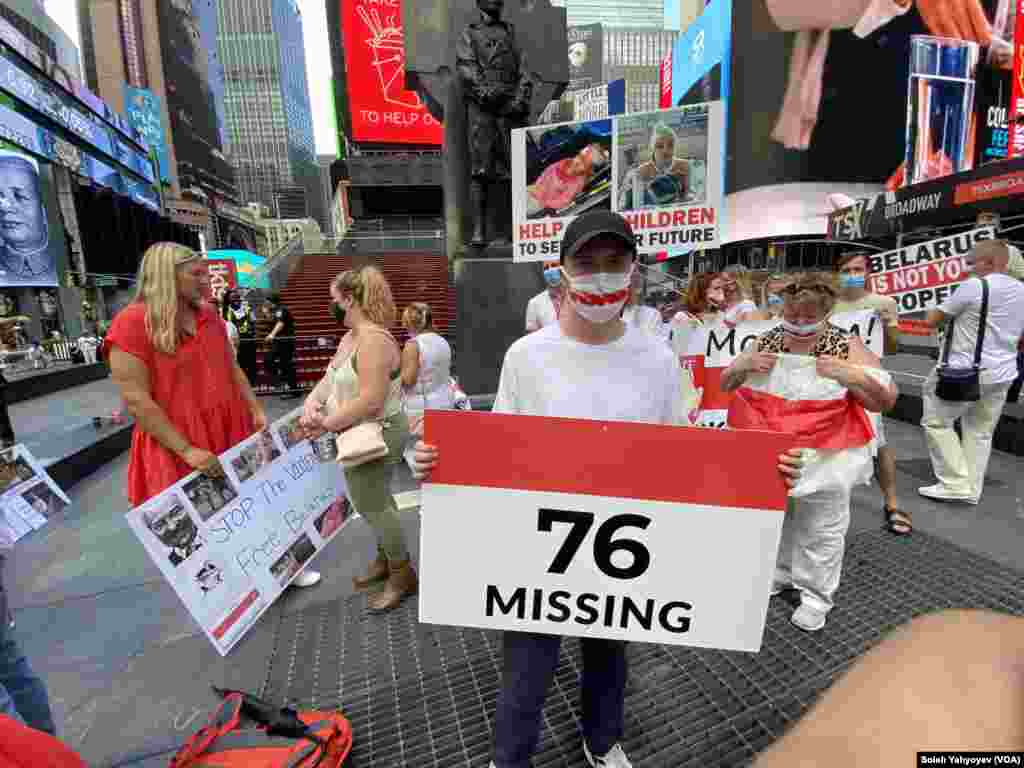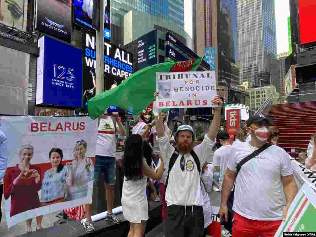 “Yashasin Belarus!” degan hayqiriqlar Nyu-Yorkning Tayms Skver xiyobonida yangramoqda. Belaruslik immigrantlar namoyishlar o’tkazib, mamlakatni 26 yildan beri boshqarib kelayotgan Aleksandr Lukashenkoni hokimiyatdan ketishda chaqiryapti.