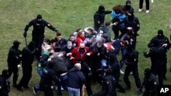 Bu o'rtada Minskda yakshanba yana o’n minglab odam hukumatga qarshi namoyishga chiqdi. Militsiya namoyishchilarni tarqatish maqsadida to’qmoq, suv va karaxt qiluvchi granatalarni ishga soldi. Ayrim namoyishchilarni militsiya olib ketgani aytiladi. “Vesna” inson huquqlari guruhiga ko’ra, 330 dan ortiq odam ushlangan.