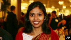 Kxobragade diplomatik immunitetidan foydalanib, mamlakatni tark etdi. Davlat departamenti ayblov hamon kuchga qolayotganini, u AQShga qaytsa, tergov qilinishini bildirmoqda.