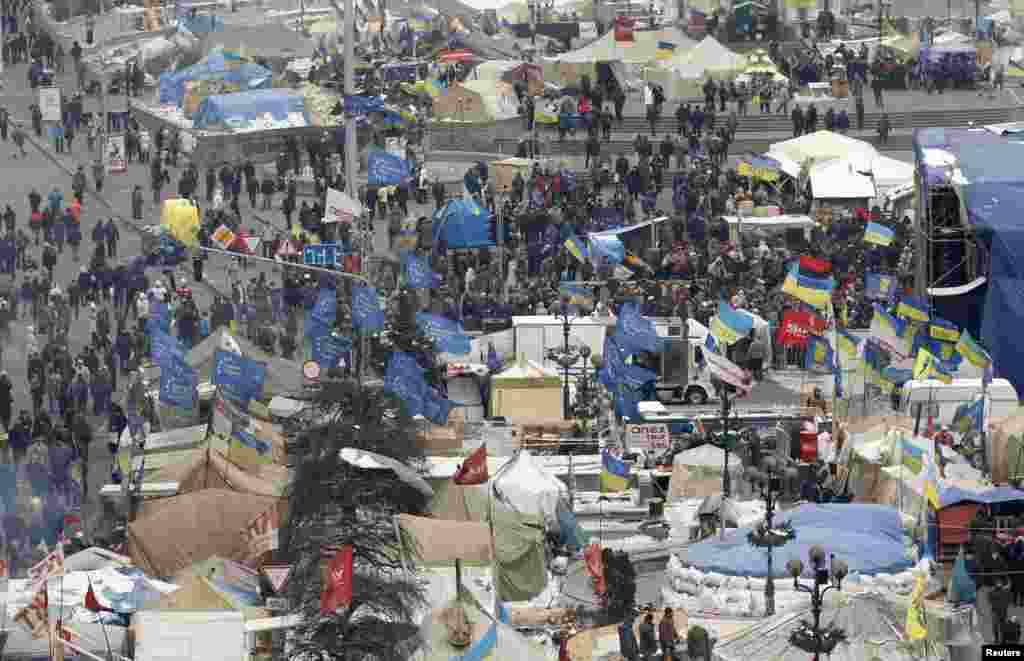 Kiyevdagi manzara: namoyishlar tinmagan, qahratonga qaramay odamlar ko'chada