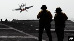 16-iyun kuni qiruvchi samolyotlar kemalardan osmonga ko'tarilib, "Islomiy davlat" guruhining Iroq shimolidagi qarorgohlarini bombardimon qildi.