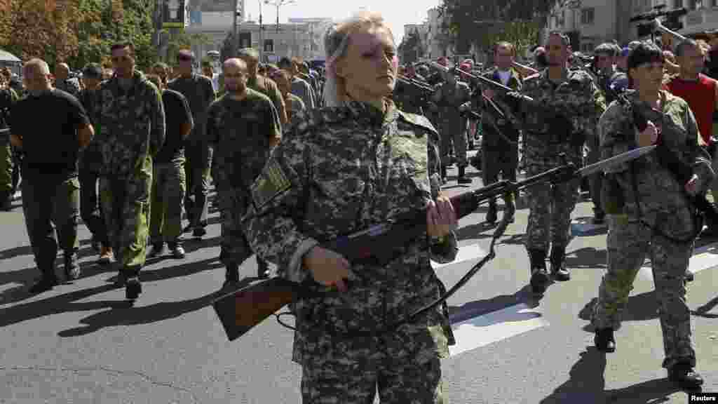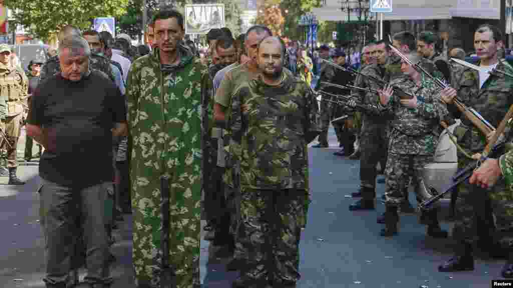 Ukraina mustaqillik bayramini nishonlar ekan, sharqda bo'lginchilar asirdagi askarlarni ko'chalardan namoyishkorona olib o'tishdi
