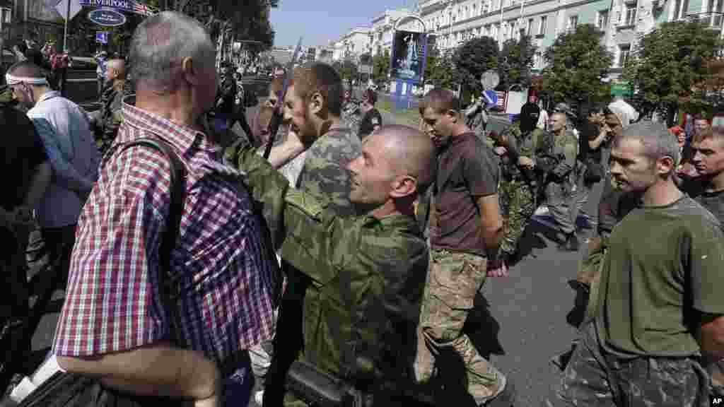 Ukraina mustaqillik bayramini nishonlar ekan, sharqda bo'lginchilar asirdagi askarlarni ko'chalardan namoyishkorona olib o'tishdi