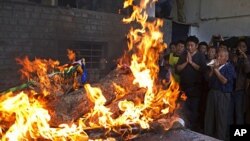 Inson huquqlari faollariga ko'ra, bugun Lxasada uch bolaning onasi ham monastir oldida o'ziga o't qo'yib, o'lgan.
