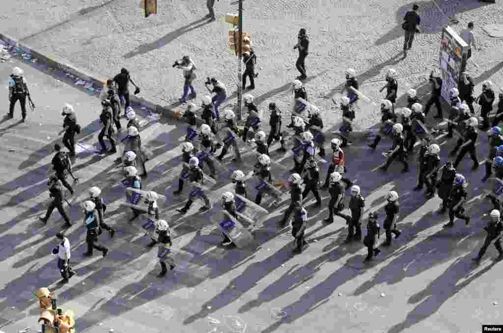 Taksim maydonida hukumatdan norozi guruhlarning namoyishi davom etmoqda. Ularni tartibga solish uchun maydonda politsiyachilar soni oshirilgan.