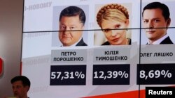 Ukraina prezidentligi uchun poygada, dastlabki hisoblarga ko'ra, shokoladchi-milliarder Petro Poroshenko 55,9 foiz ovoz to'plagan. Sobiq bosh vazira Yuliya Timoshenko 12 foiz ovoz bilan ikkinchi o'rinda. Yakuniy natijalar dushanba e'lon qilinadi.