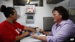 Emi Krautvurst Vashingtondagi Uitman Uoker klinikasida Vich/SPIDni tekshirish uchun bepul qon oladi.