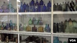 Mana bu shishalar shakli va kelib chiqishi bois “Gollandiya piyozlari” nomini olgan. Milliy muzey kolleksiyasidagi eng eski eksponat hisoblanadi. XVIII asrning boshida qo’lda yasalgan. Eng yangi eksponatlar esa mana bu sut idishlari. Zamonaviy texnologiya yordamida 1-2 yil oldin ishlab chiqilgan.Hammasi bo’lib muzeyda 2000 dan ortiq shisha ko’rasiz. Rang-barang, kattaligi turli-tuman. Aksariyati XIX asr boshida yasalgan. 32 raqam ostidagisi 1890-yillar boshida yasalgan, deydi Gari Moller, muzey direktori.