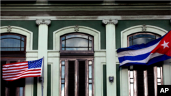 Davlat departamenti uzra bugundan e'tiboran Kubaning qizil, oq va ko'k chiziq tortilgan bayrog'i hilpiramoqda.