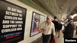 Bu Nyu-York shahri metrosining 10 bekatida devorga yopishtirilgan plakatlardagi so’zlar. Ular ortidagi guruh – Amerikada erkinlik himoyasi tashabbusi - tobora kuchayib borayotgan islomiy fundamentalizm tahdidiga qarshi kurashamiz, deb keladi. Rahbar Pamela Geller o’tgan yili va o’tgan oy Nyu-York metrosida paydo bo’lgan aksil-yahudiy shiorlarga qarshi shu tariqa kurashishga qaror qildik deydi.