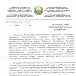 AOKA direktori Asadjon Xo’jayev imzosi ostida xuddi shunday ogohlantirish “Gazeta.uz” nashriga ham jo’natilgan.